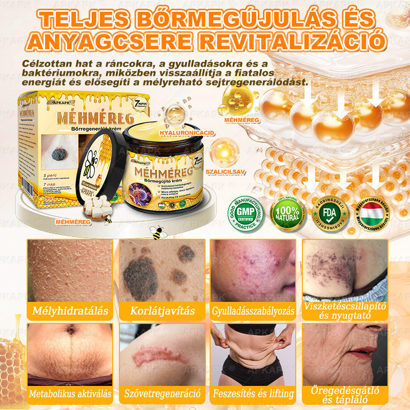 âA modern bĆrgyĂłgyĂĄszati kutatĂĄsok tovĂĄbb igazoltĂĄk, hogy hatĂ©konyan segĂti az Ă©rzĂ©keny bĆr helyreĂĄllĂtĂĄsĂĄt, csökkenti a hiperpigmentĂĄciĂłt, Ă©s fenntartja a bĆr vĂ©dĆrĂ©tegĂ©nek egĂ©szsĂ©ges mƱködĂ©sĂ©t, akĂĄr 98%-os klinikai hatĂ©konysĂĄgi arĂĄnnyal. Nemzetközileg elismert biztonsĂĄga Ă©s teljesĂtmĂ©nye rĂ©vĂ©n az đđđđđđÂź mĂ©hmĂ©reges bĆrregenerĂĄlĂł krĂ©m termĂ©szetes, nem invazĂv alternatĂvĂĄvĂĄ vĂĄlt a költsĂ©ges professzionĂĄlis kezelĂ©sekkel szemben â klinikai szintƱ bĆrjavĂtĂĄst Ă©s megĂșjulĂĄst kĂnĂĄl otthoni környezetben, mellĂ©khatĂĄsok nĂ©lkĂŒl.â